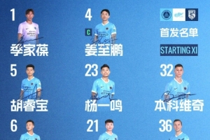2-田逸梵 8-周定洋 12-张晓彬 13-彭鹏(GK) 14-李龙 15-于睿 17-李宁 20-玄智健 34-夏合扎提·吾加合买提 46-申桓铭 54-姚俊毅 56-王昱衡