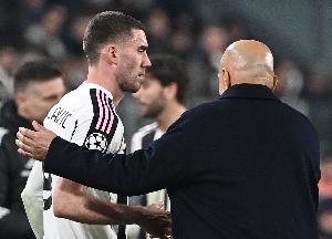 该记者透露:“这位塞尔维亚前锋几周前刚刚复出,但在尤文图斯比赛下半场热身时,他遭遇了轻微的肌肉拉伤。弗拉霍维奇立即返回更衣室,斯帕莱蒂教练组的一名工作人员陪同他返回,并给他拿了一个冰袋。”